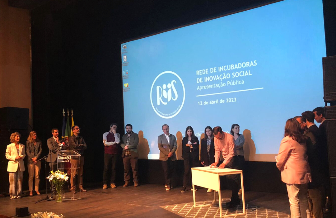 O Cineteatro da Chamusca, no Ribatejo, foi palco, no dia 12 de abril, da apresentação pública da Rede de Incubadoras de Inovação Social (RIIS), seguido da Formalização do Protocolo de Fundação da RIIS e da assinatura da Carta de Reconhecimento da Criação da Rede de Incubadoras de Inovação Social pela ministra da Coesão Territorial, Ana Abrunhosa.