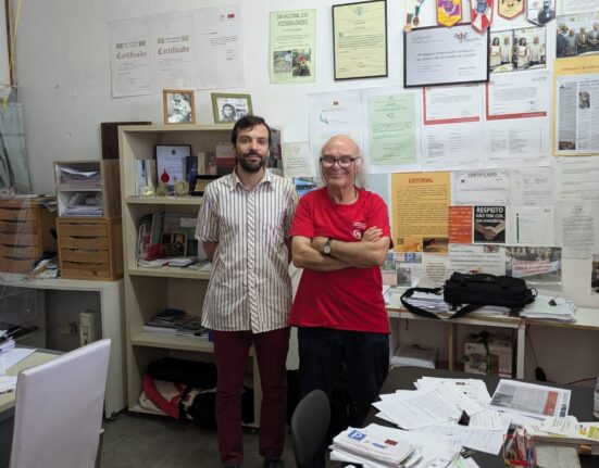 O deputado Jorge Pinto, acompanhado por Diamantino Raposinho, como representante do Grupo de Coordenação Local do Livre do Porto, reuniu