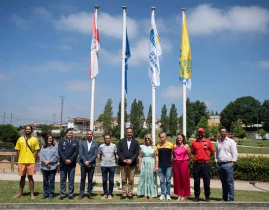 Bandeira Azul e Qualidade de Ouro hasteadas na praia fluvial situada em Milheirós de Poiares. Época balnear iniciou-se a 1
