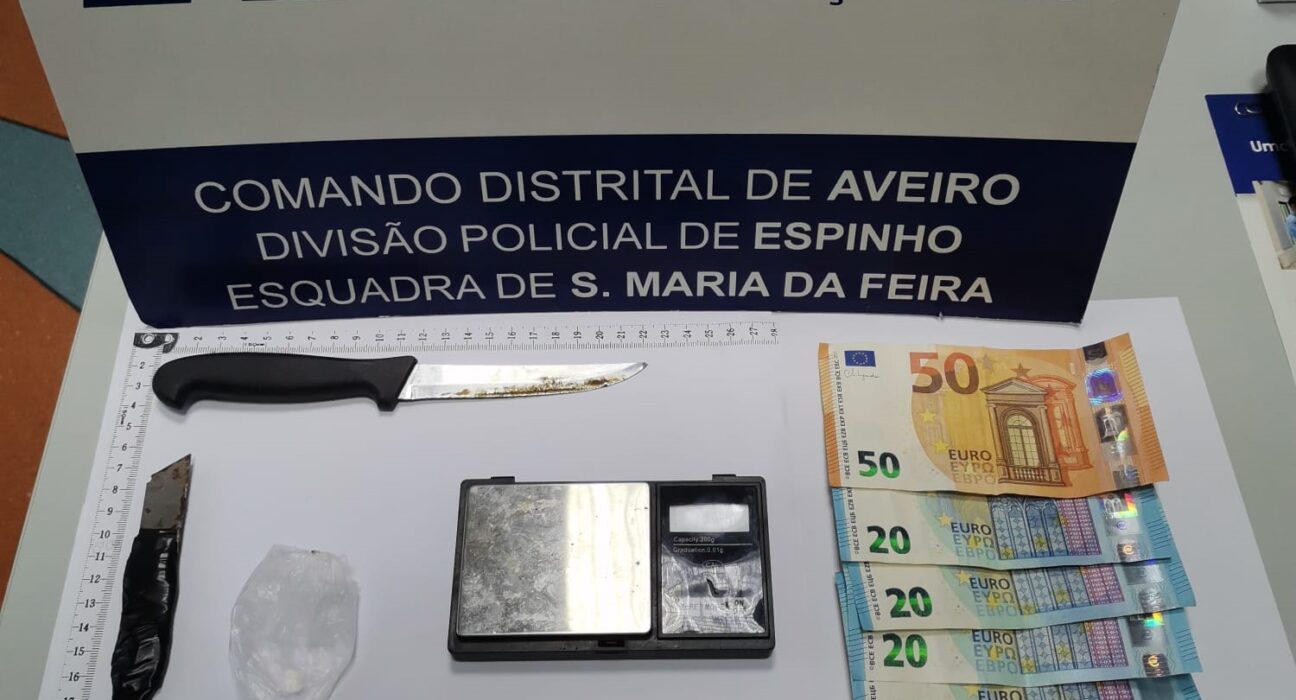 Em nota de imprensa, a PSP escreve que “foram apreendidas cerca de 20 doses de estupefacientes (haxixe e cocaína), bem como uma balança digital, um x-ato, uma faca e 150 euros, como medida cautelar”.